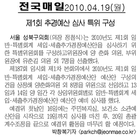 | 다음글 | 2010. 10. 28(목) 성북신문 보도내용 |