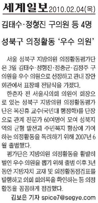 | 2010. 02. 04(목) 세계일보 보도내용 | |||||