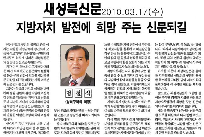 | 2010. 03. 17(수) 새성북신문 보도내용 | |||||