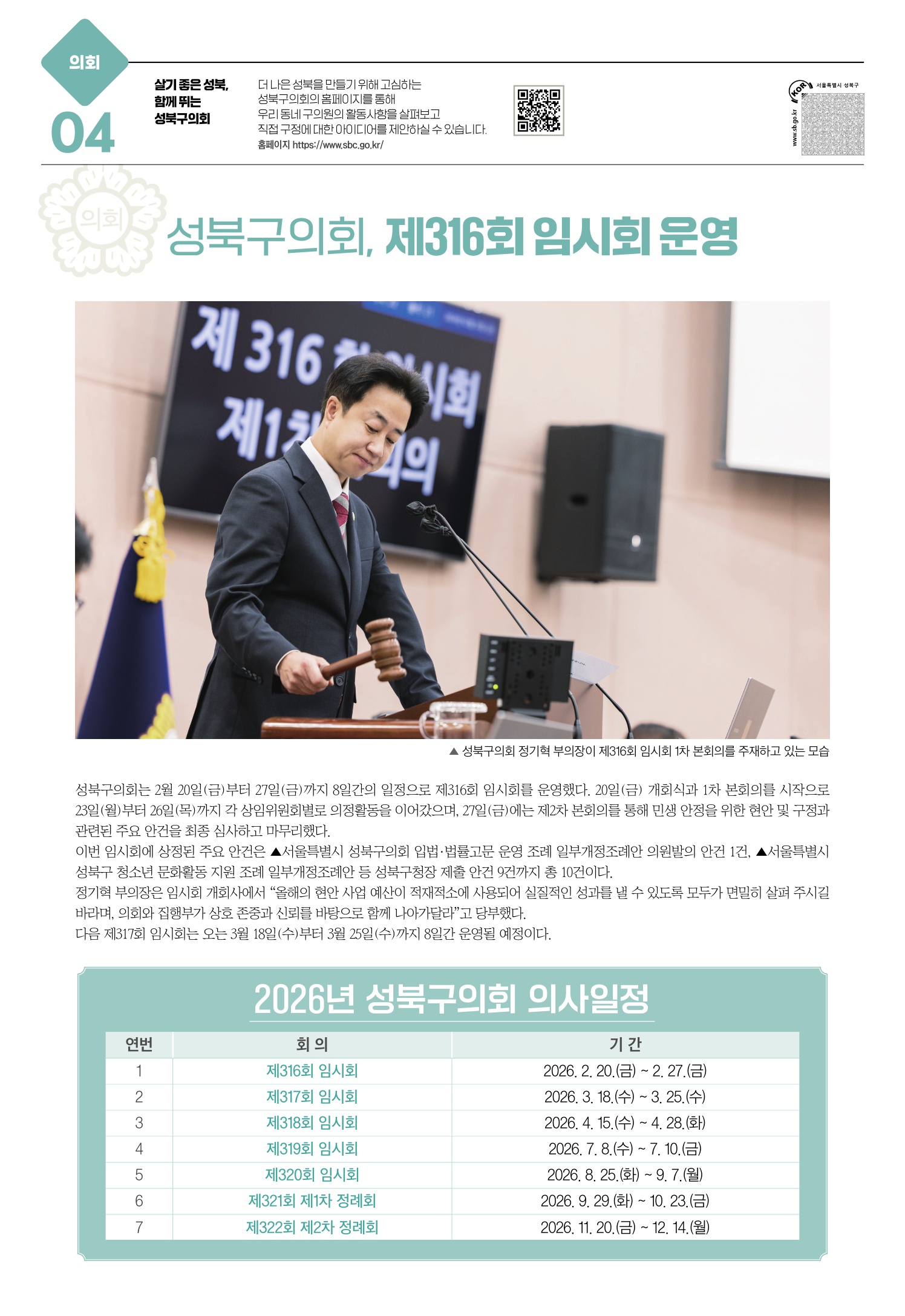 | 이전글 | 성북구의회 소식(성북소리 2026년 2월호) |