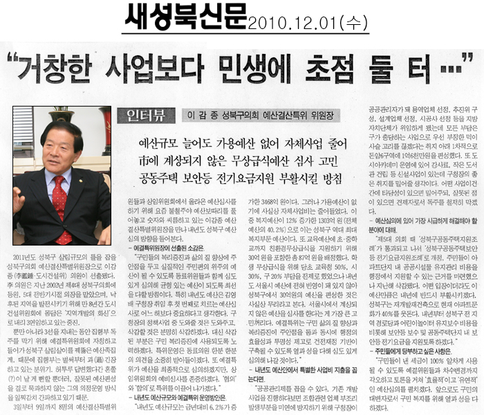 | 2010. 12. 01(수) 새성북신문 보도내용 | |||||