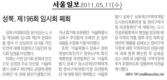 | 2011. 05. 11(수) 서울일보 보도내용 | |||||