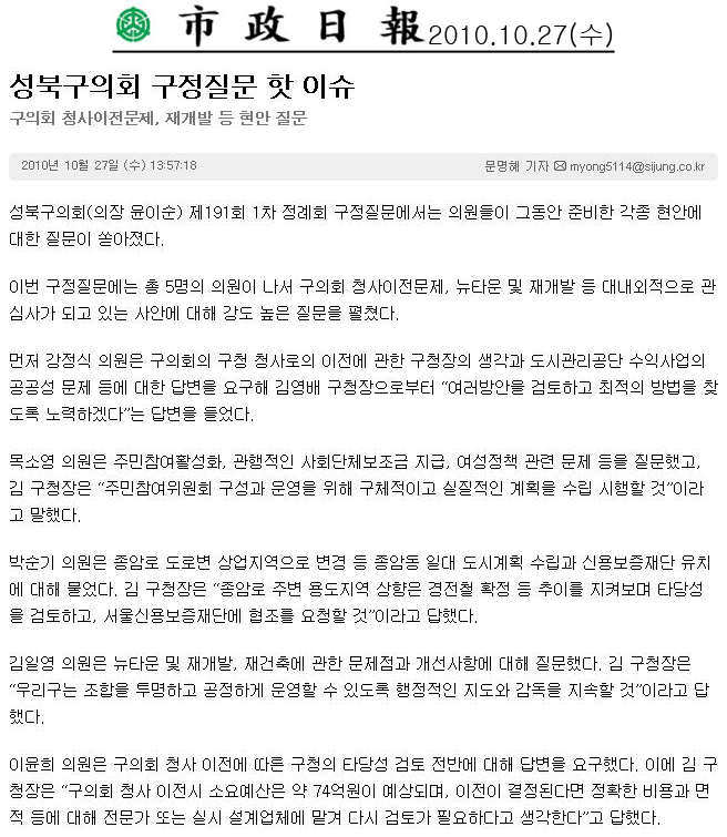 | 작성자 | 성북구의회 | 작성일 | 2010.11.05 | 조회수 | 1070 |