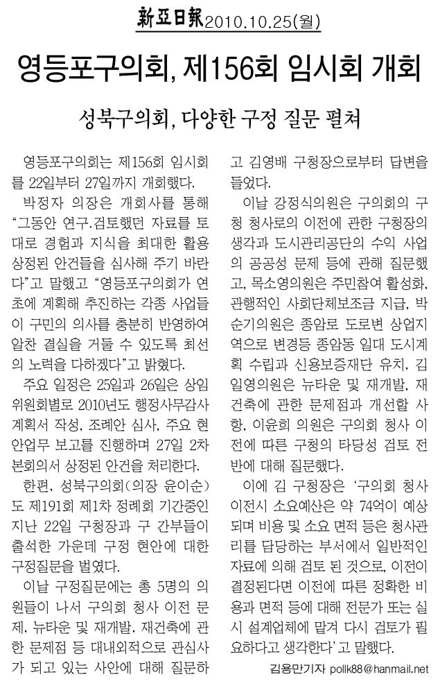 | 다음글 | 2010. 10. 28(목) 성북신문 보도내용 |