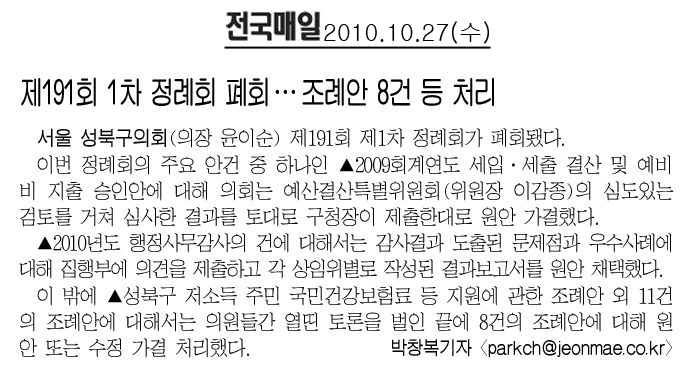 | 다음글 | 2010. 10. 28(목) 성북신문 보도내용 |