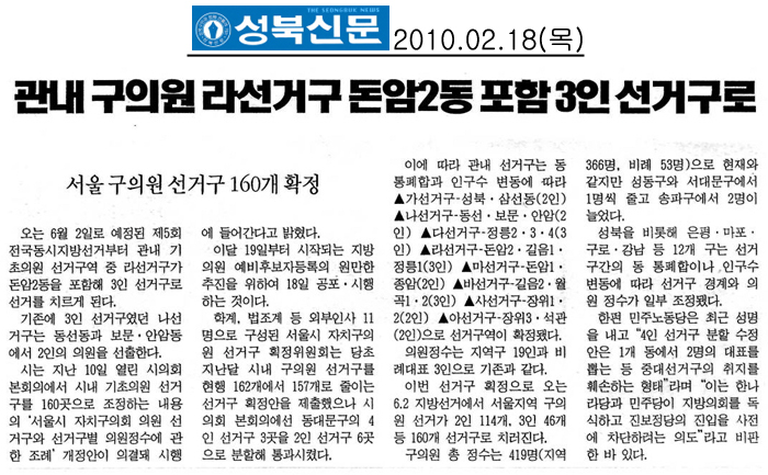 | 2010. 02. 18(목) 성북신문 보도내용 | |||||