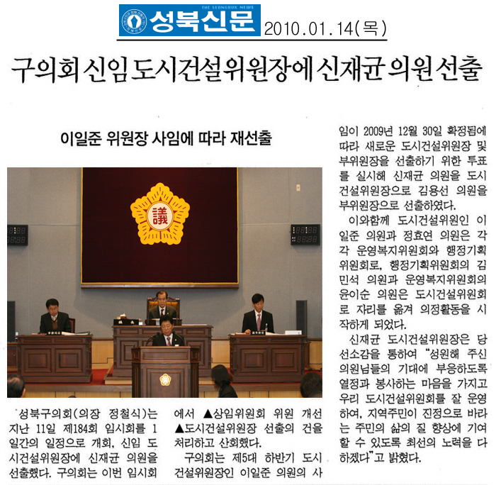 | 2010. 01. 14(목) 성북신문 보도내용 | |||||