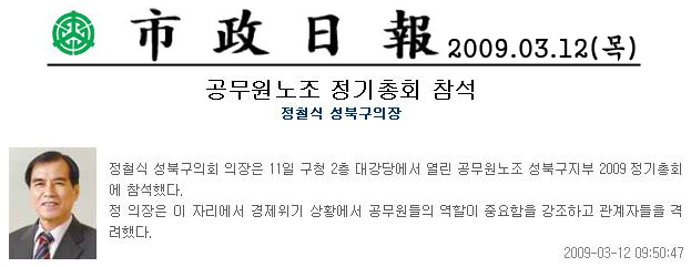 | 작성자 | 성북구의회 | 작성일 | 2009.04.30 | 조회수 | 255 |
