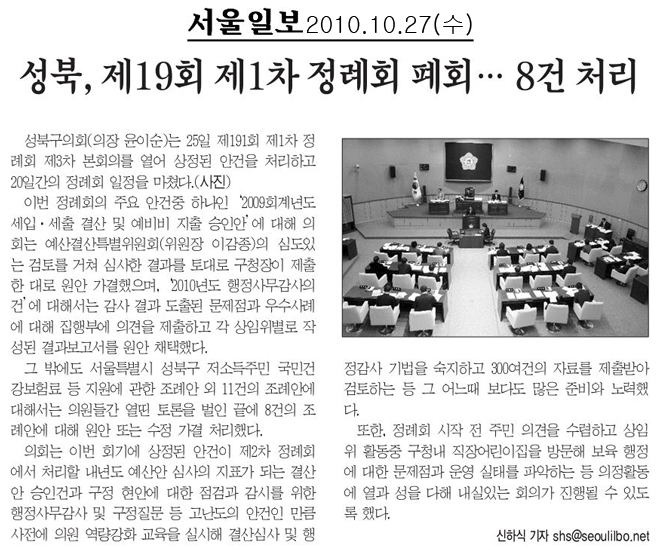 | 2010. 10. 27(수) 서울일보 보도내용 | |||||