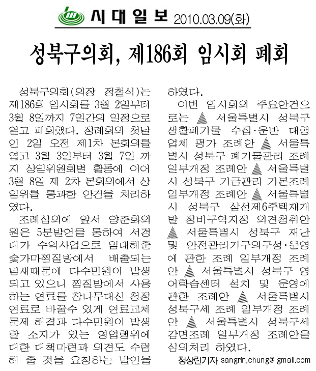 | 2010. 03. 09(화) 시대일보 보도내용 | |||||