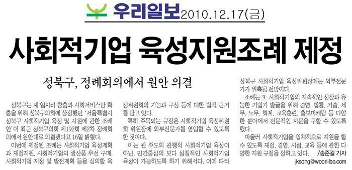 | 2010. 12. 17(금) 우리일보 보도내용 | |||||