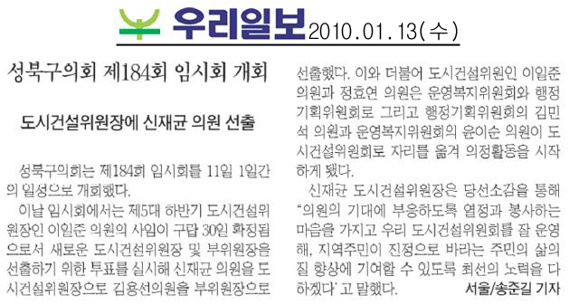 | 2010. 01. 13(수) 우리일보 보도내용 | |||||
