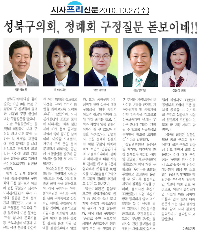 | 다음글 | 2010. 10. 28(목) 성북신문 보도내용 |