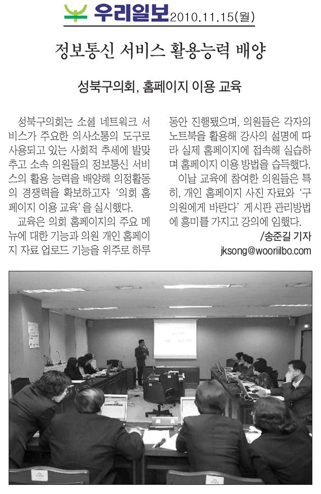 | 2010. 11. 15(월) 우리일보 보도내용 | |||||