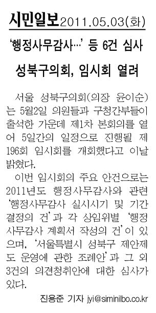| 2011. 05. 03(화) 시민일보 보도내용 | |||||