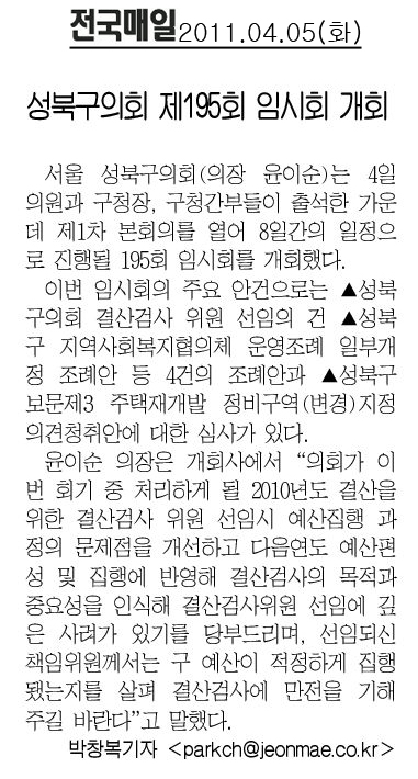 | 작성자 | 성북구의회 | 작성일 | 2011.04.26 | 조회수 | 1873 |