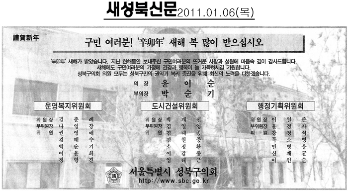 | 2011. 01. 06(목) 새성북신문 보도내용 | |||||