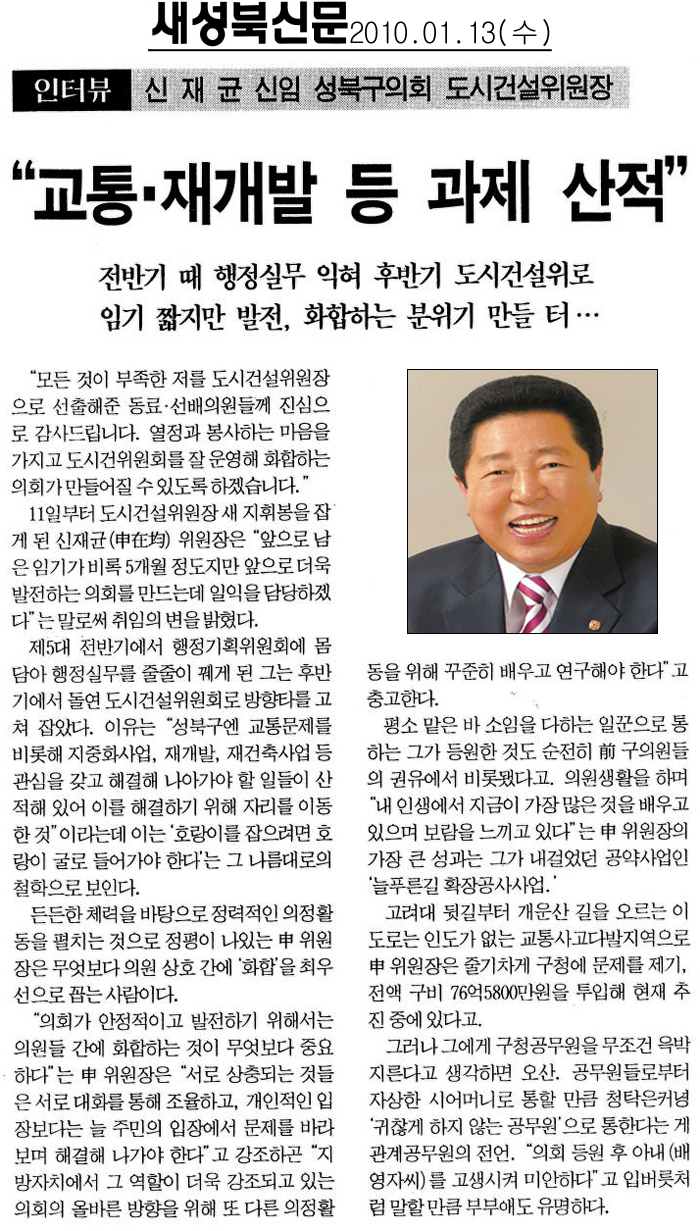 | 2010. 01. 13(수) 새성북신문 보도내용 | |||||