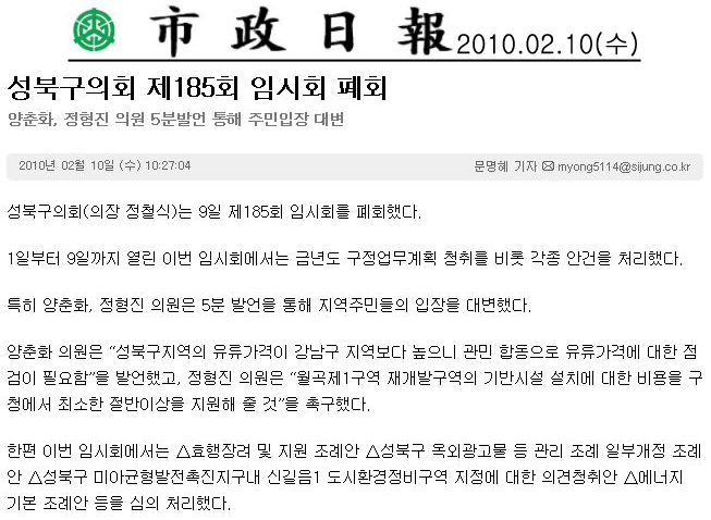 | 다음글 | 2010. 10. 28(목) 성북신문 보도내용 |