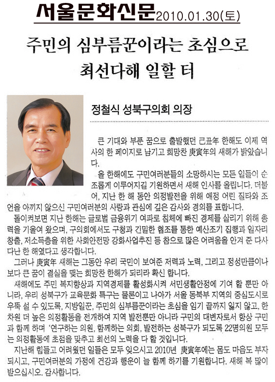 | 2010. 01. 30(토) 서울문화신문 보도내용 | |||||