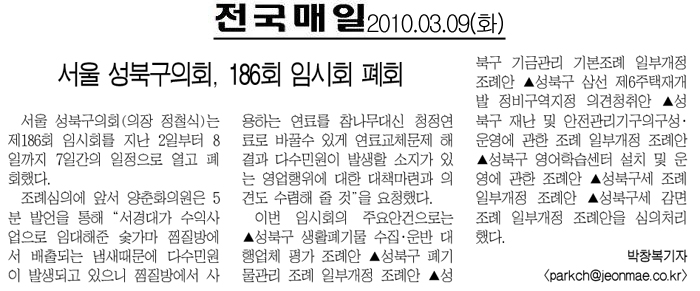 | 다음글 | 2010. 10. 28(목) 성북신문 보도내용 |