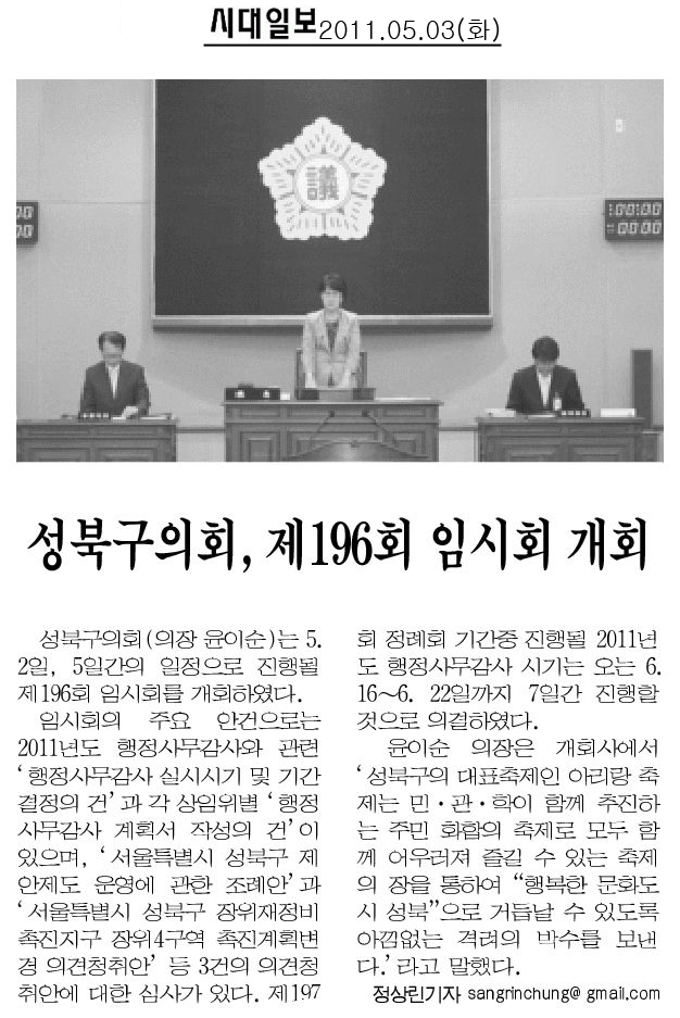 | 2011. 05. 03(화) 시대일보 보도내용 | |||||