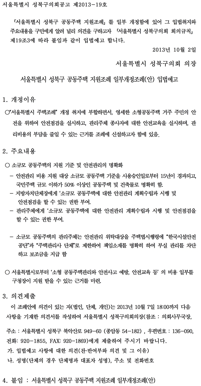 | 성북구 공동주택 지원조례 일부개정조례안 | |||||