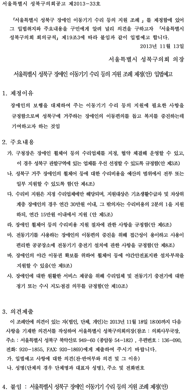 | 장애인이동기기 수리 등의 지원 조례안 | |||||