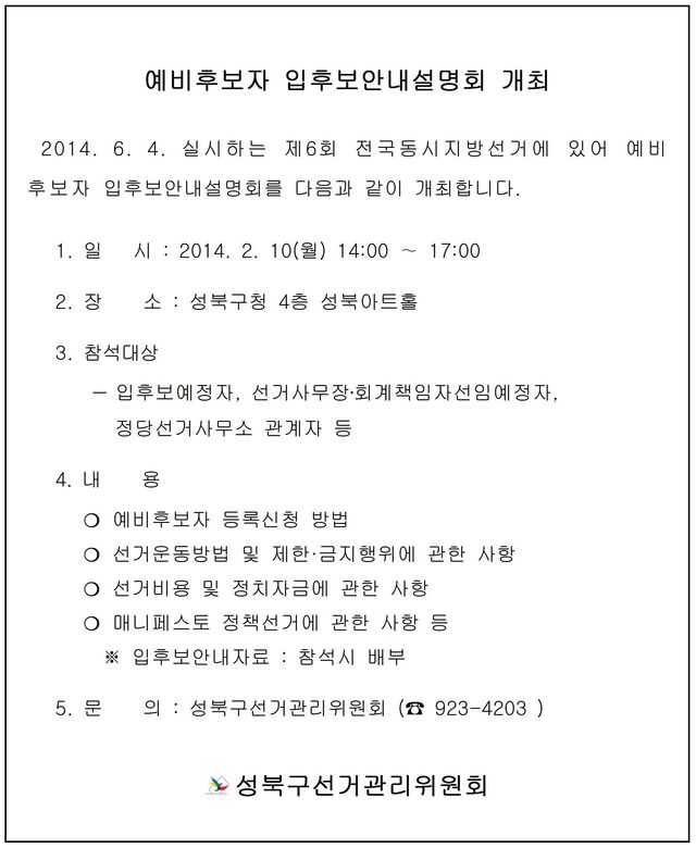 예비후보자 입후보 안내 설명회 개최